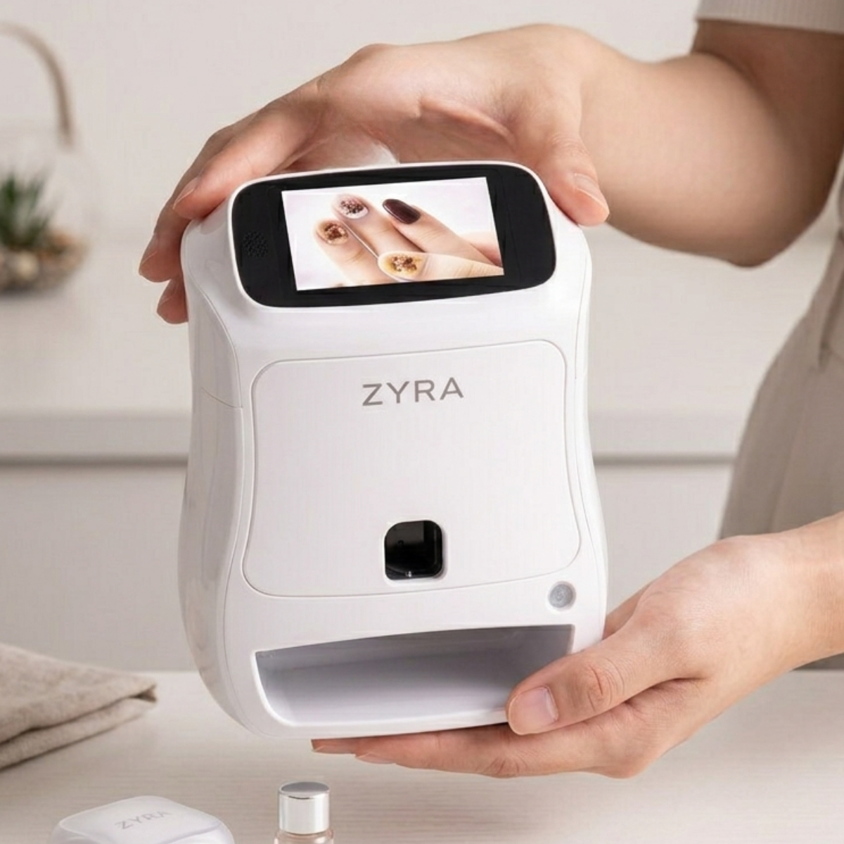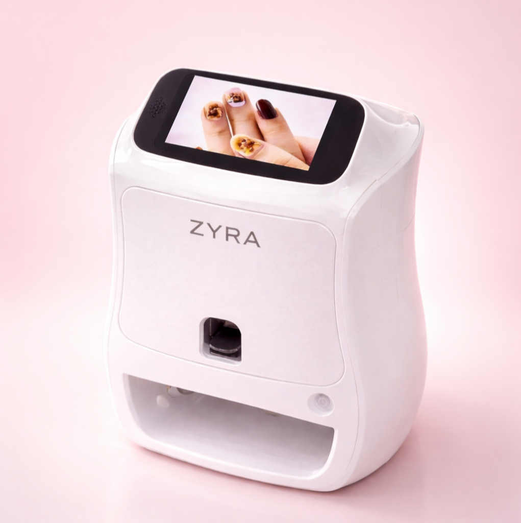 ZYRA uses proprietary cosmetic-grade ink cartridges designed for safe, vibrant, and long-lasting nail prints.